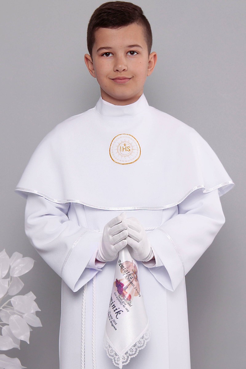 • Kolekcja: Długa alba komunijna dla chłopca (z karczkiem i kontrafałdą)