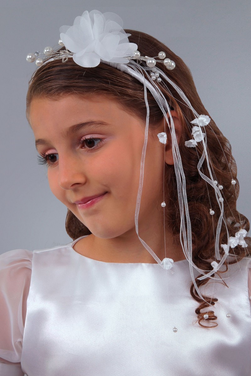 Opaska komunijna będzie idealnie prezentować się niezależnie od wybranej na ten dzień fryzury. Dzięki temu, że bazą każdej opaski komunijnej jest plastyczna obręcz z łatwością dostosuje do pożądanego obwodu.