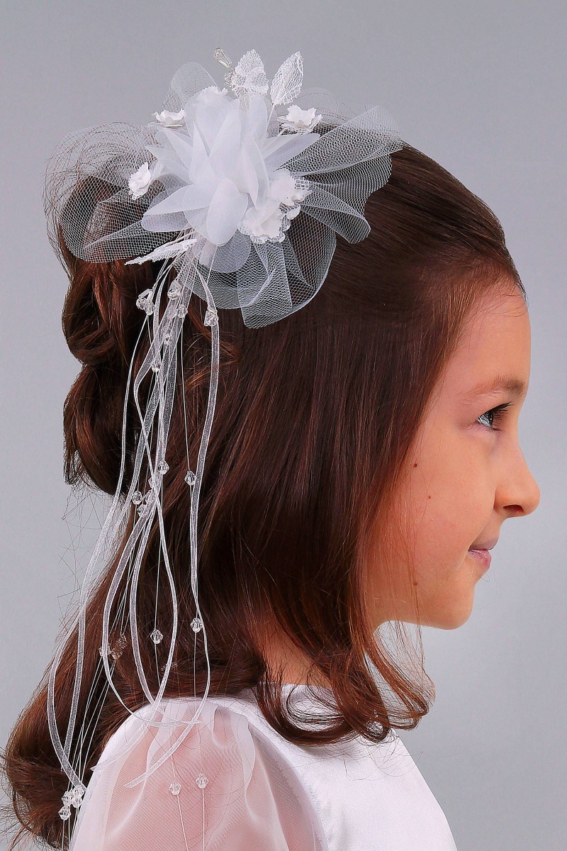 Prezentujemy model przypinki komunijnej PW11 upiększa głowę małej damy i wykonany jest ręcznie z ogromną dbałością o najdrobniejszy szczegół. Podkreśla też fryzurę pierwszokomunijną dzięki czemu dziewczynka wygląda w tym dniu wyjątkowo pięknie.